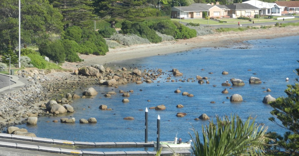 Rosetta Bay ← Previous Next → Lag of erratics overlying and being exhumed from diamictite adjacent to boat ramp.