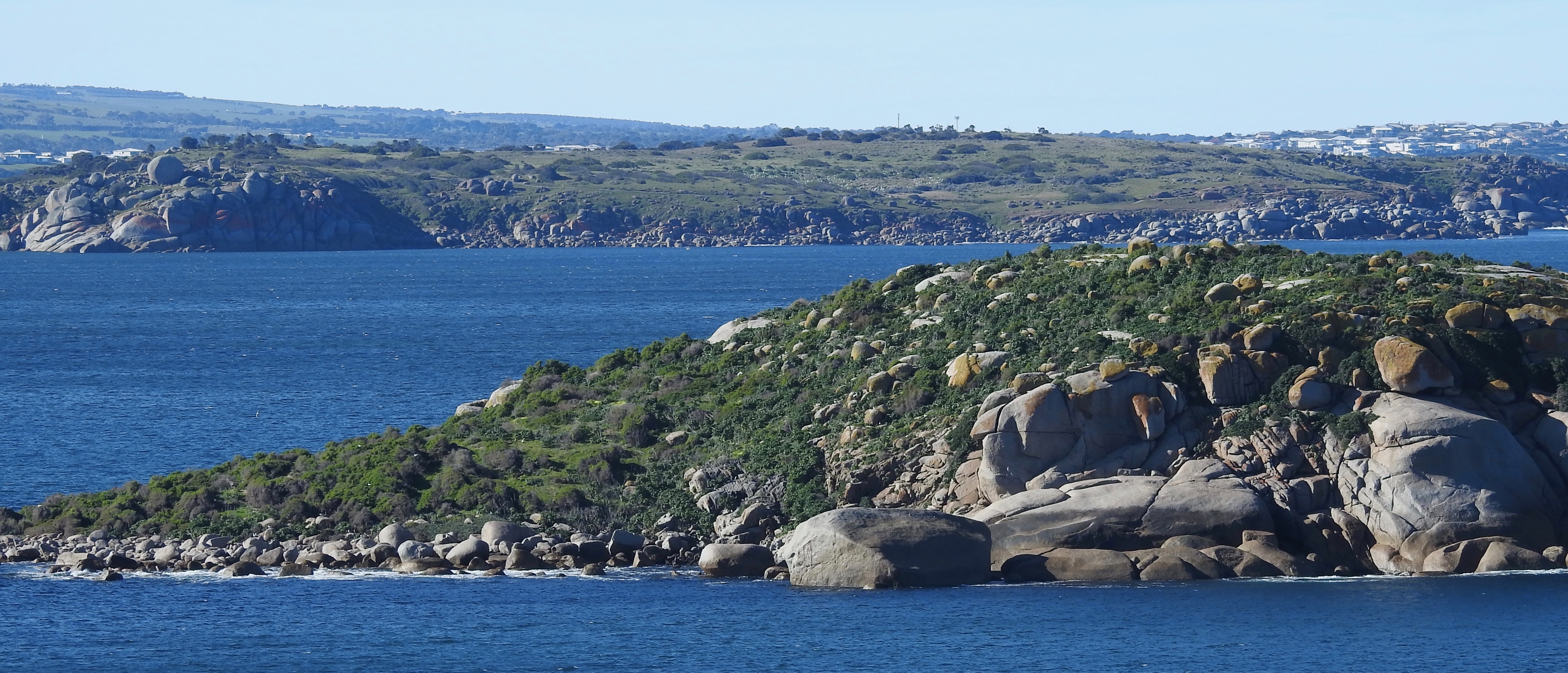Encounter Bay – Version 3 ← Previous Next → View across Wright Island to Granite Island and Port Elliot (right) beyond.